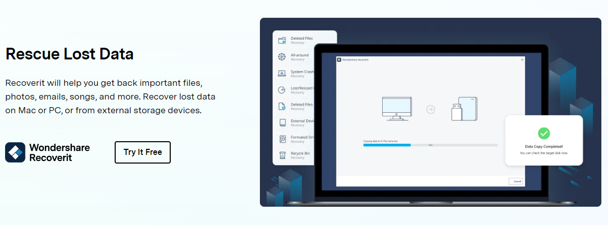 实用工具领域,专注于数据恢复的Wondershare Recoverit支持多种类型和格式的数据和文件恢复,且恢复过程简单,仅需三个步骤,在几分钟内就能恢复已删除或者已格式化或甚至已损坏的文件。
